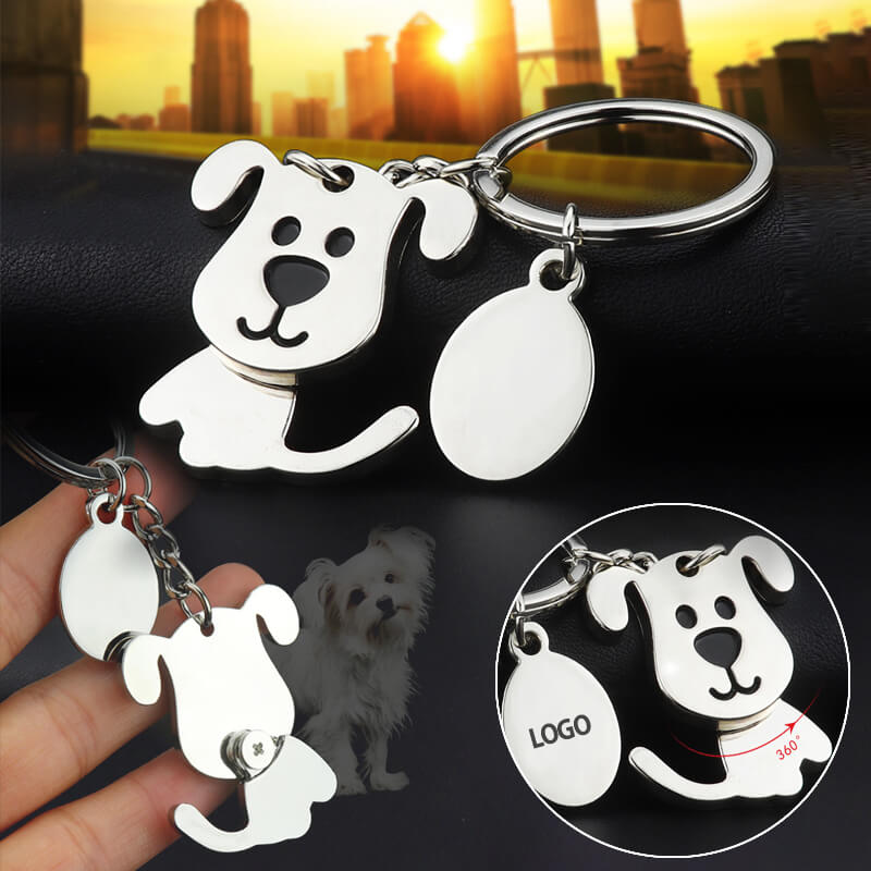 Móc chìa khóa hình con chó với kiểu dáng hình con chó có thể xoay đầu 360 độ trong thật tinh nghịch và đáng yêu. Bạn có thể khắc laser lên móc khóa theo yêu cầu (khắc logo, khắc tên, sđt, hình ảnh....), thích hợp dùng làm quà tặng bạn bè, đồng nghiệp hoặc làm vật phẩm quảng cáo cho cty, đoàn thể....Bạn thường gặp khó khăn khi tìm móc khóa xe, khóa nhà... sản phẩm này được thiết kế khá bất ánh sáng với hình cún con với vẻ mặt đáng yêu.
