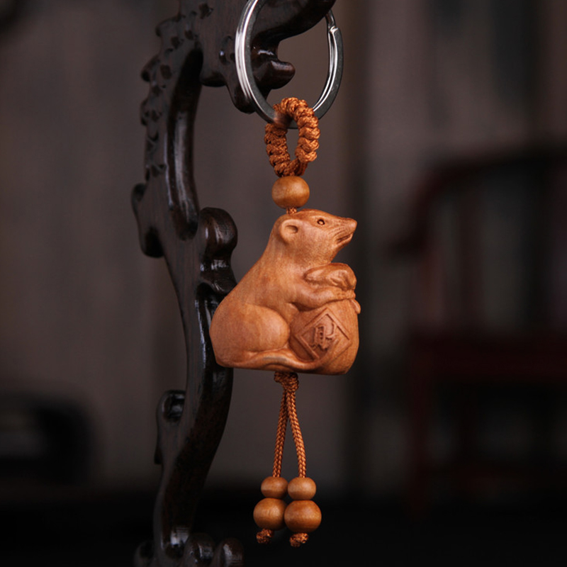 Tên sản phẩm: Móc khóa bằng gỗ đào hình con chuột
