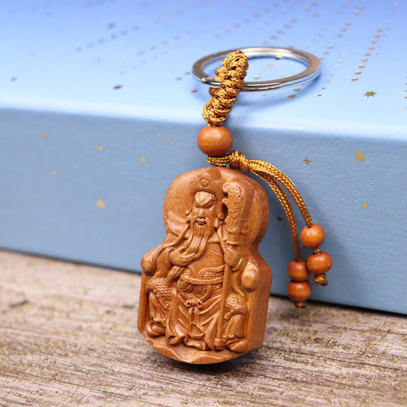 Móc khóa gỗ thánh Quan Công cầm đao dùng làm quà tặng người thân, bạn bè ...mang ý nghĩa tốt đẹp gửi trao cho người nhận.
